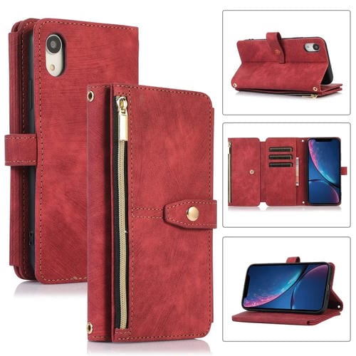 Funda para Teléfono iPhone Xr Dream 9-Card Wallet Zipper Bag Cuero (Rojo)