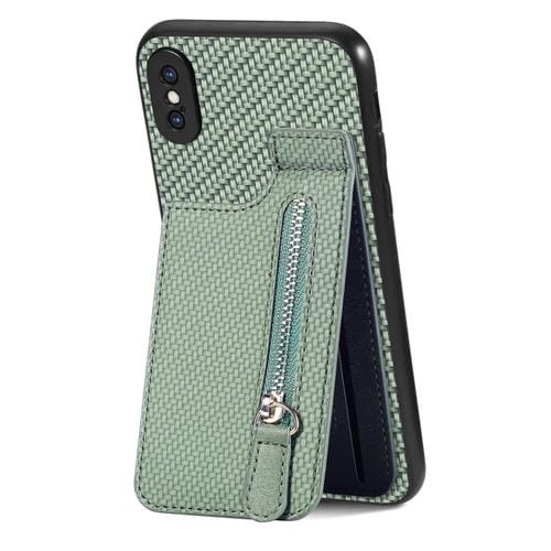 Funda de Teléfono para iPhone Xr con Cremallera Vertical de Fibra de Carbono (Verde)