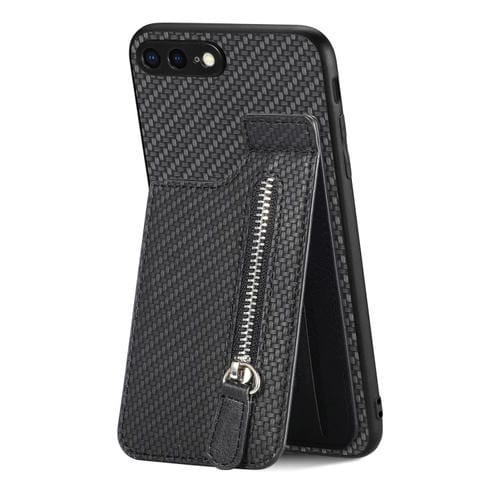 Estuche para Teléfono iPhone 7 Plus 8 Plus con Bolsa de Tarjeta Magnética Fibra de Carbono (Negro)