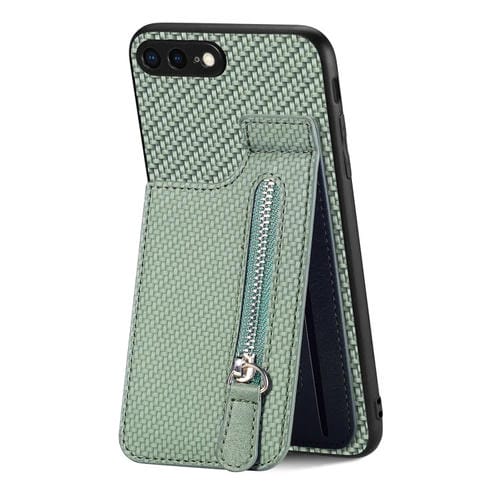Funda de teléfono para iPhone 7 Plus / 8 Plus con cremallera vertical de fibra de carbono (Verde)