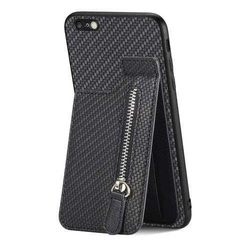 Funda de Teléfono iPhone 6 / 6S Fibra de Carbono Cremallera Vertical (Negro)