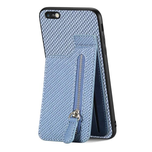 Caja de Teléfono para iPhone 6 Plus 6S Plus con Bolsa de Tarjeta Magnética Fibra de Carbono (Azul)