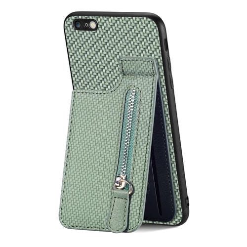 Funda de teléfono iPhone 6 / 6S Fibra de carbono Cremallera vertical (Verde)