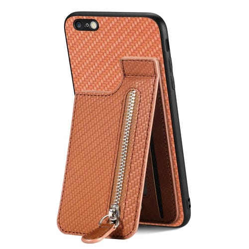 Funda de teléfono iPhone 6 Plus 6S Plus con cremallera vertical fibra de carbono (Marrón)
