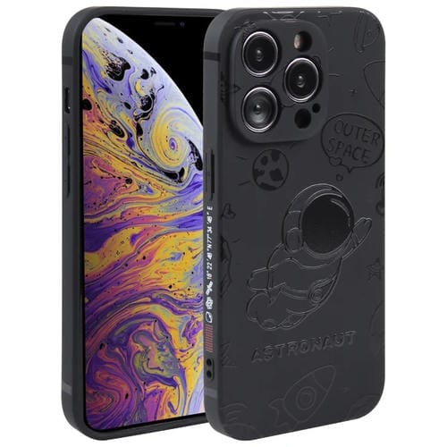 Funda de teléfono iPhone Xs Max patrón Astronauta de Marte borde recto silicona (Negro)