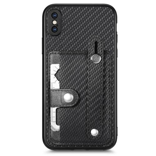 Funda para iPhone Xs Max Wristband Kickstand Card Wallet Back Cover Phone Case con Tool Knife (Negro)