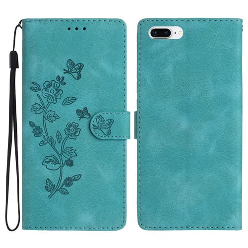Funda de Teléfono iPhone 8 Plus 7 Plus 6 Plus Cuero Estampado Flores en Relieve (Azul Cielo)