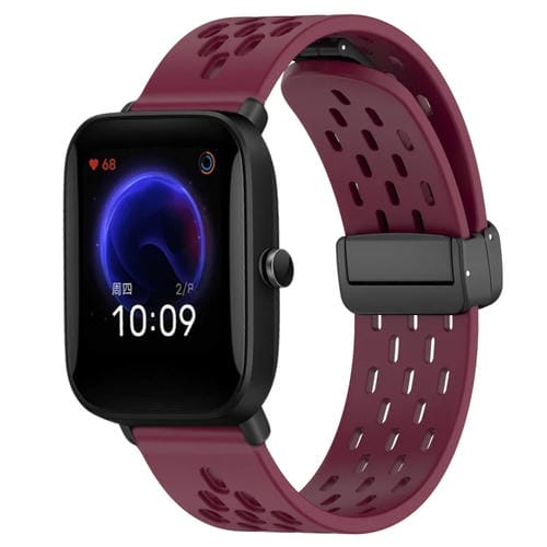 Correa de Reloj Amazfit Pop Silicona Cierre Magnético Plegable 20mm (Borgoña)