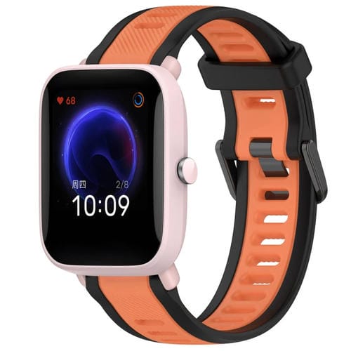 Correa de Reloj Amazfit Pop Silicona Deportiva Dos Colores 20mm (Naranja + Negro)