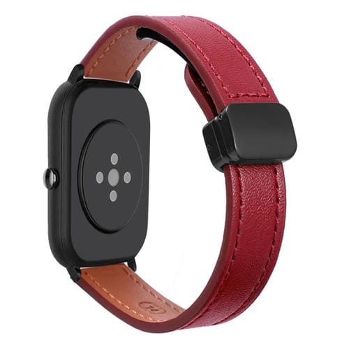 Correa de Reloj Cuero Microfibra Magnética 22mm para Amazfit Watch Bip5 (Rojo Vino)