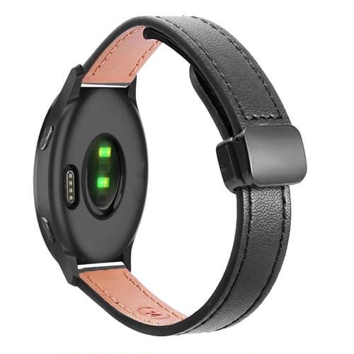 Correa de Reloj Cuero Microfibra Garmin Vivoactive 4 Hebilla Magnética 22mm (Negra)