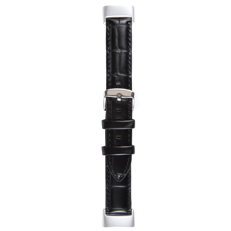 For Fitbit Charge 5 18mm Bamboo Joint Texture Genuine Leather Watch Band(Black Bamboo)