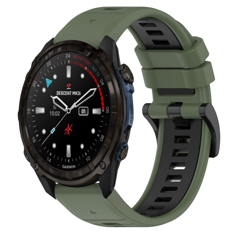 For Garmin Descent Mk3i 51mm 26mm Two-color Sport Silicone Watch Band (Olive Green + Black)