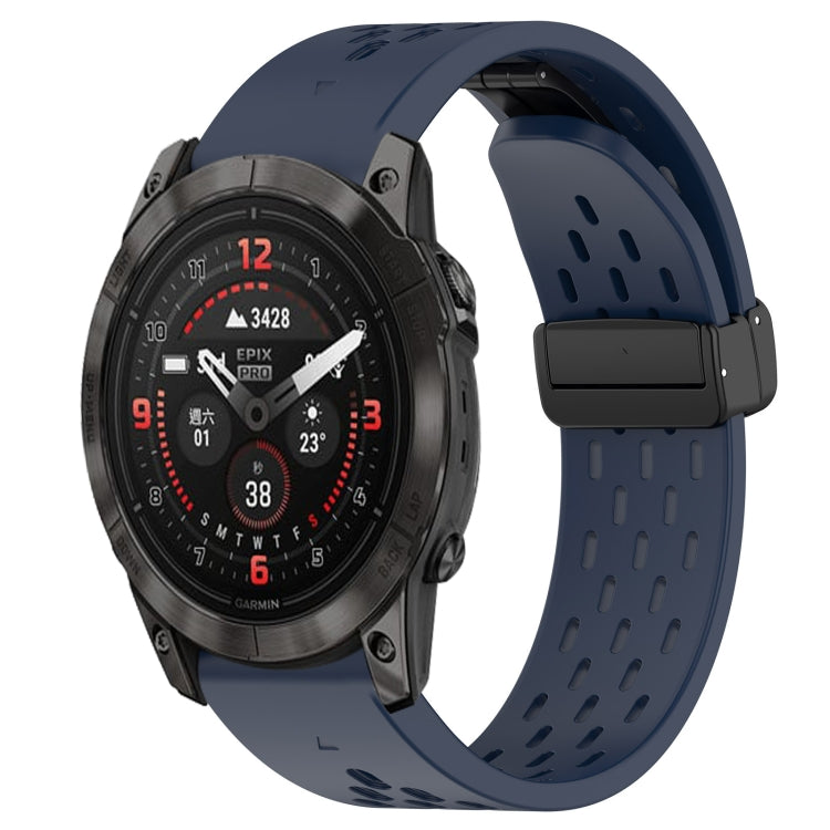 For Garmin Epix Pro 51mm 26mm Silicone Watch Band with Hole and Folding Buckle (Midnight Blue)