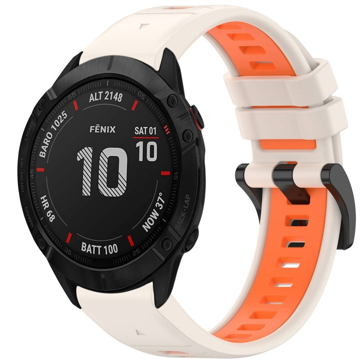Correa de Reloj Garmin Fenix 6X Pro Silicona Liberación Rápida Dos Colores (Starlight + Orange)