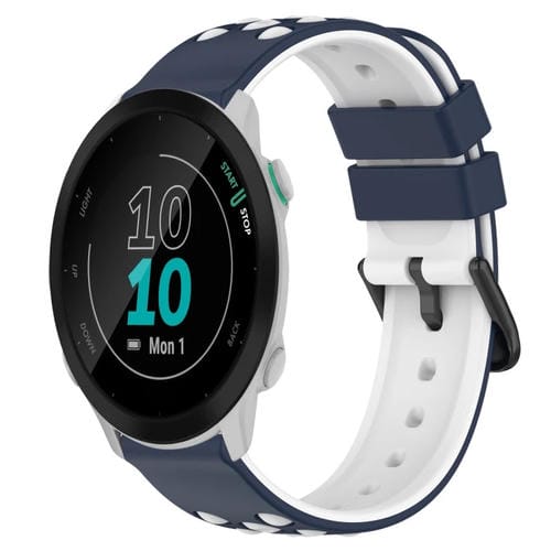 Correa de Reloj Garmin Forerunner 55 20mm Silicona Porosa Dos Colores (Azul Medianoche + Blanco)