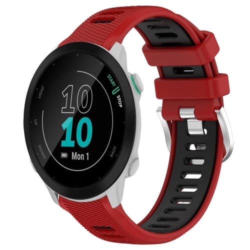 Correa de Reloj Garmin Forerunner 55 20mm Silicona Dos Colores Hebilla Acero (Rojo + Negro)