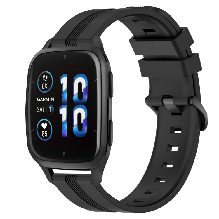 Correa de Reloj Garmin Forerunner Sq2 20mm Silicona con Rayas Cóncavas (Negro)