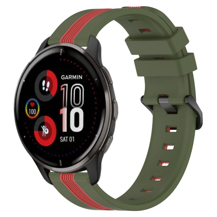 Correa de Reloj Garmin Venu 2 Plus silicona dos colores bucle convexo 20mm (Verde Oliva + Negro)