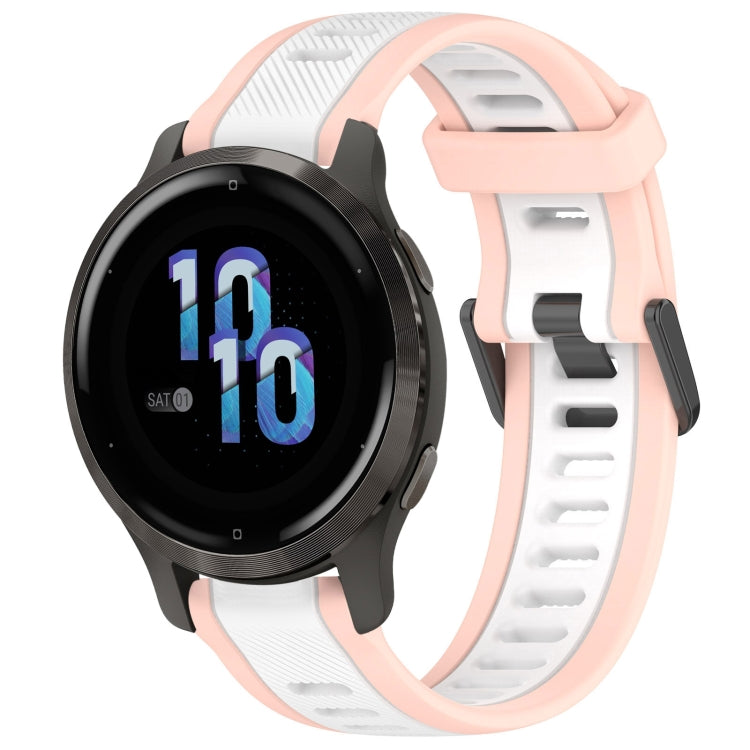 Correa de Reloj Garmin Venu 2S 18mm silicona deportes dos colores hebilla acero (Rosa + Blanco)