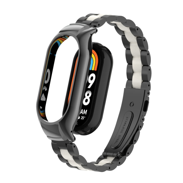 Caja de Metal Integrada para Xiaomi Mi Band 8 con Correa de Tres Cuentas (Negro + Blanco)