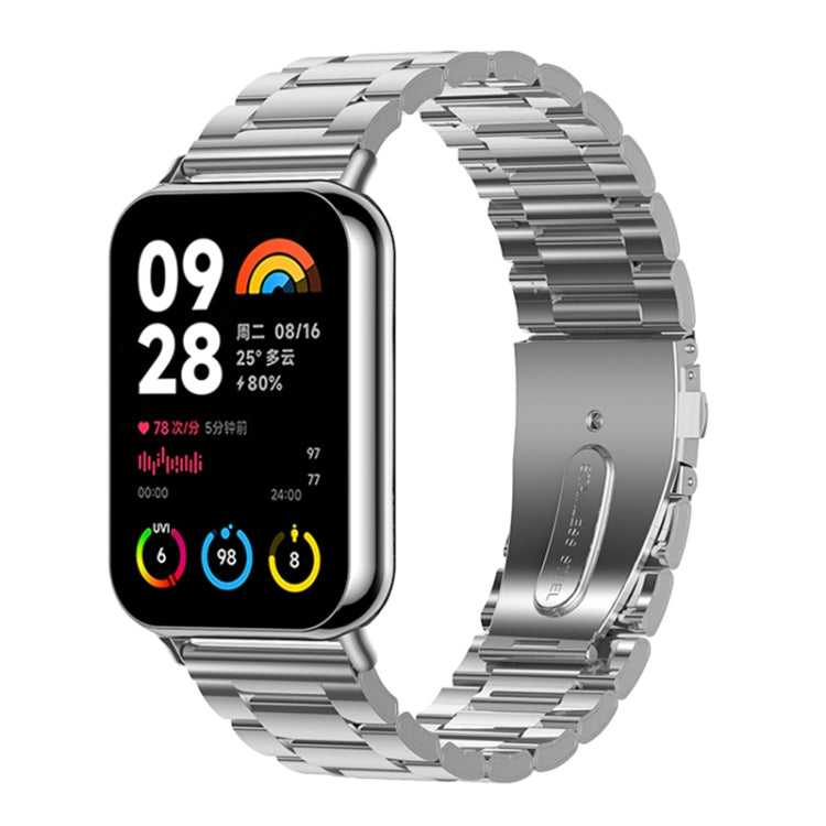 Correa de acero inoxidable de tres cuentas para Xiaomi Smart Band 9 Pro/8 Pro (plateada)