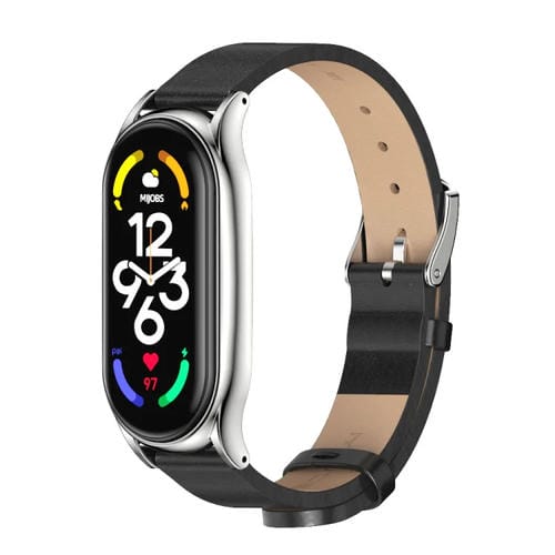 Correa para Xiaomi Mi Band 7 y 7 NFC Mijobs Cs Metal Case Cuero Top Cow (Plata Negra)