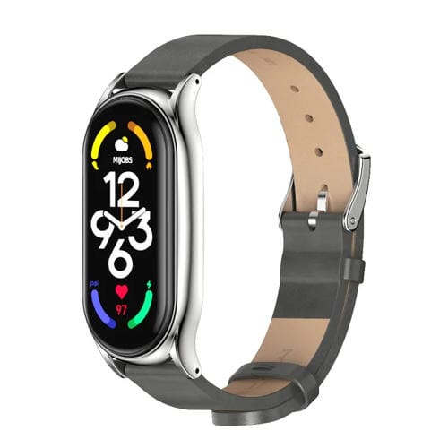 Banda de Reloj para Xiaomi Mi Band 7 y 7 NFC Mijobs de Cuero Microfibra Metal (Plata Gris)