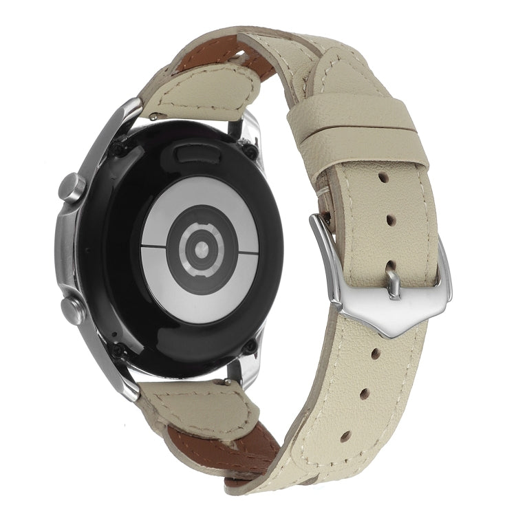 Correa de Reloj Cuero Genuino Cosida Torcida Universal 22mm (Beige)