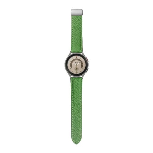 Correa de Reloj para Samsung Galaxy Watch5 40mm y 44mm Cuero Genuino Litchi Hebilla Plateada (Verde)