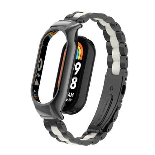 Caja de Metal Integrada para Xiaomi Mi Band 8 con Correa de Tres Cuentas (Negro + Blanco)