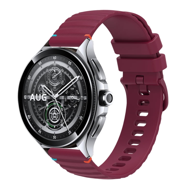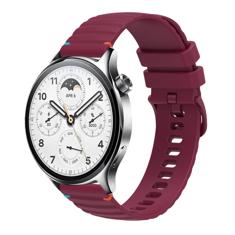 Correa de silicona para reloj Xiaomi Watch Color 2 con puntadas onduladas de 22 mm (rojo vino)