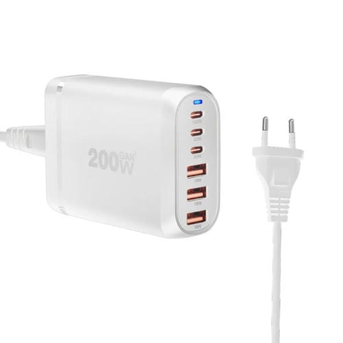 Adaptador Multipuerto Gan PD100W Tipo C x3 USB x3 para Portátil (Blanco) Enchufe Británico
