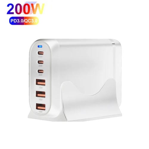 Adaptador Multipuerto Gan PD100W para Computadora Portátil Type-C x3 USB x3 (Blanco) Enchufe AU