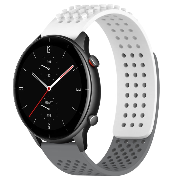 Correa de Silicona para Amazfit GTR 2 con Puntos 3D Transpirables y Orificios 22mm (Blanco + Gris)
