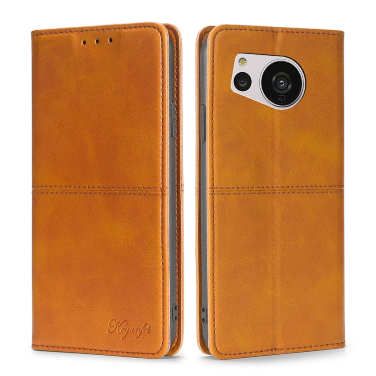 Funda de Teléfono para Sharp Aquos Sense7 Cuero Magnético Textura de Vaca (Marrón Claro)