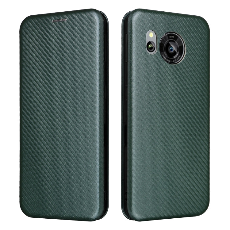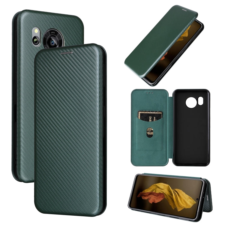 Funda de Cuero para Sharp Aquos Sense7 Plus con Textura de Fibra de Carbono (Verde)