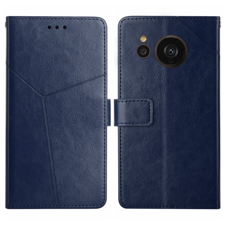 Funda de Cuero para Sharp Aquos Sense7 Sh-V48 Ht01 con Patrón en Forma de Y y Tapa (Azul)