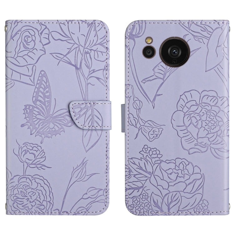 Funda de Cuero para Sharp Aquos Sense7 Sh-V48 Ht03 Skin Feel Butterfly con Tapa en Relieve (Púrpura)