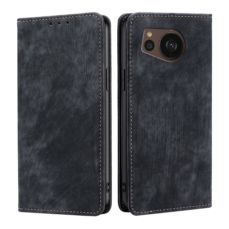 Funda de teléfono para Sharp Aquos Sense7 Plus RFID de cuero magnético con cepillo antirrobo (Negro)