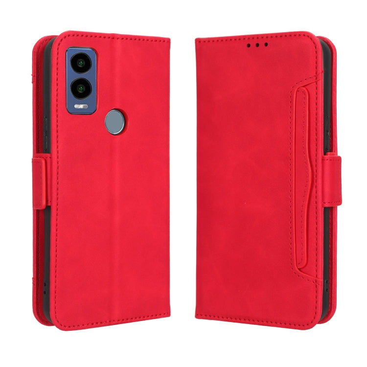Funda de Cuero para Orbic Joy Rc608L con Textura Becerro y Ranuras para Tarjetas (Rojo)