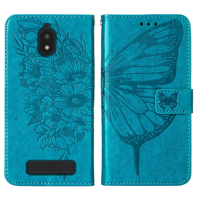 Funda de Cuero BLU View 2 (2022/2020) con Tapa de Mariposa en Relieve (Azul)