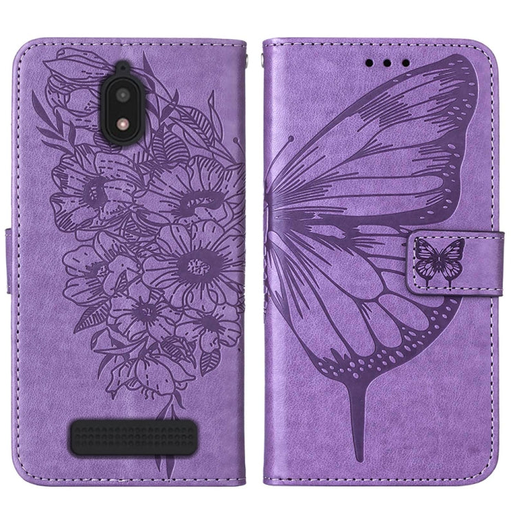 Funda de Cuero para BLU View 2 2022/2020 con Tapa de Mariposa en Relieve (Púrpura)