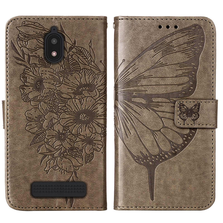 Estuche para Teléfono BLU View 2 (2022 / 2020) Cuero con Tapa de Mariposa (Gris)