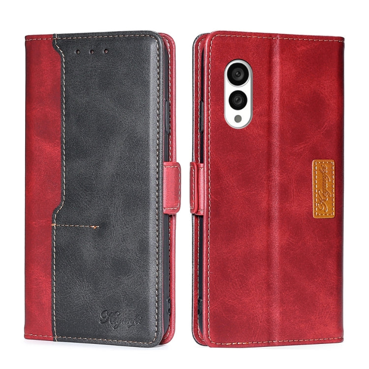 Caja de Teléfono de Cuero para Fujitsu Arrows N F-51C con Hebilla Lateral (Rojo + Negro)