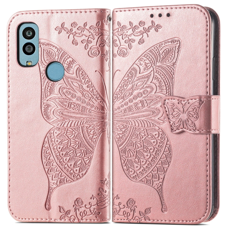 Funda para Kyocera Android One S10 Butterfly Love Flower en Cuero En Relieve (Oro Rosa)