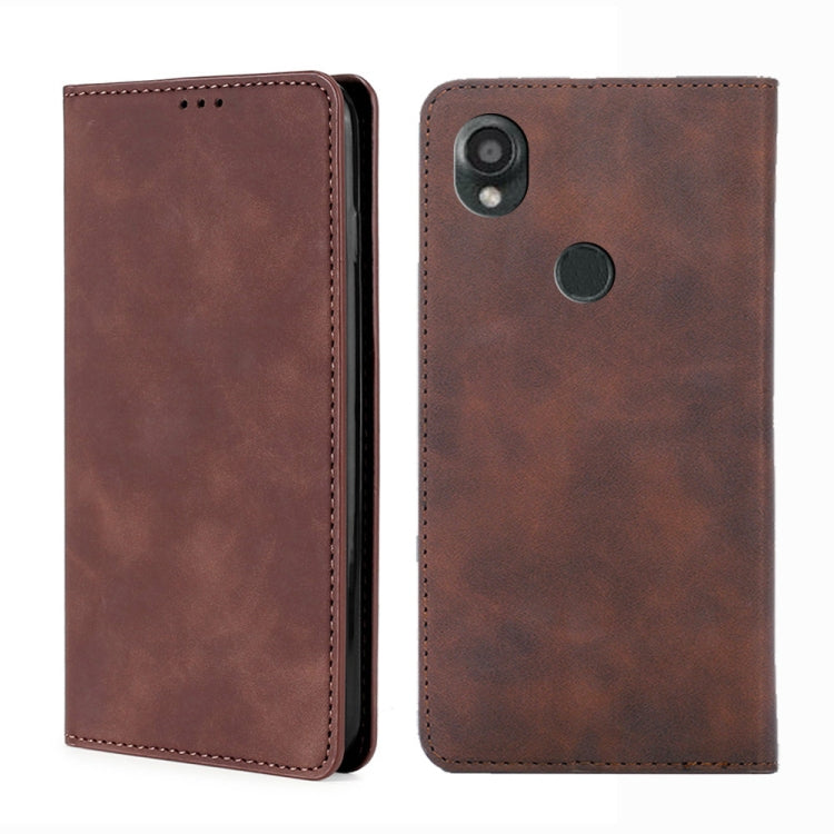 Funda Magnética de Cuero para Kyocera Digno Sx3-Kyg02 Skin Feel (Marrón Oscuro)