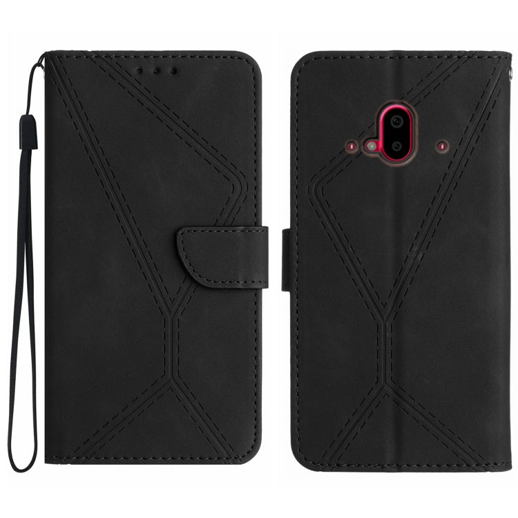 Funda de Cuero para Sharp Aquos Sense 7 con Costuras en Relieve (Negro)