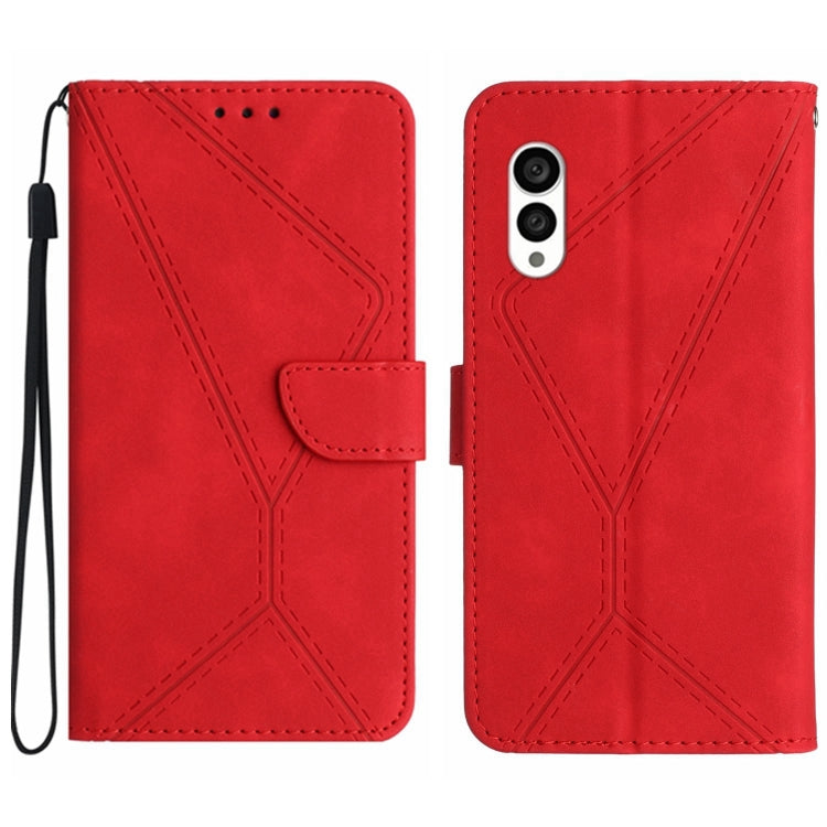 Funda de Cuero para Sharp Aquos Sense 7 en Relieve con Costuras (Rojo)