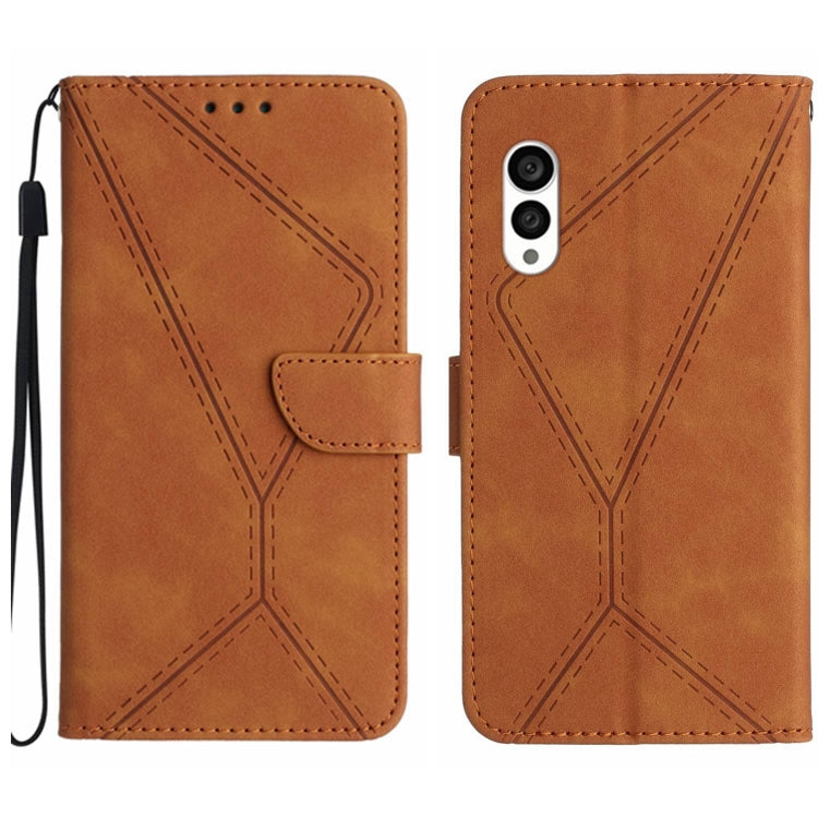 Funda de Cuero para Sharp Aquos Sense 7 con Relieve y Costuras (Marrón)